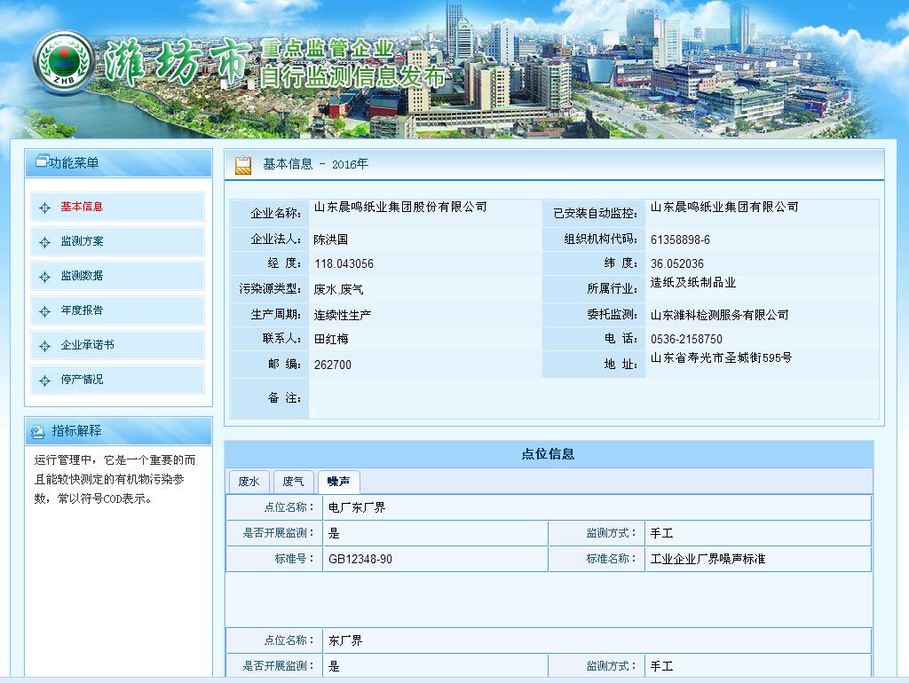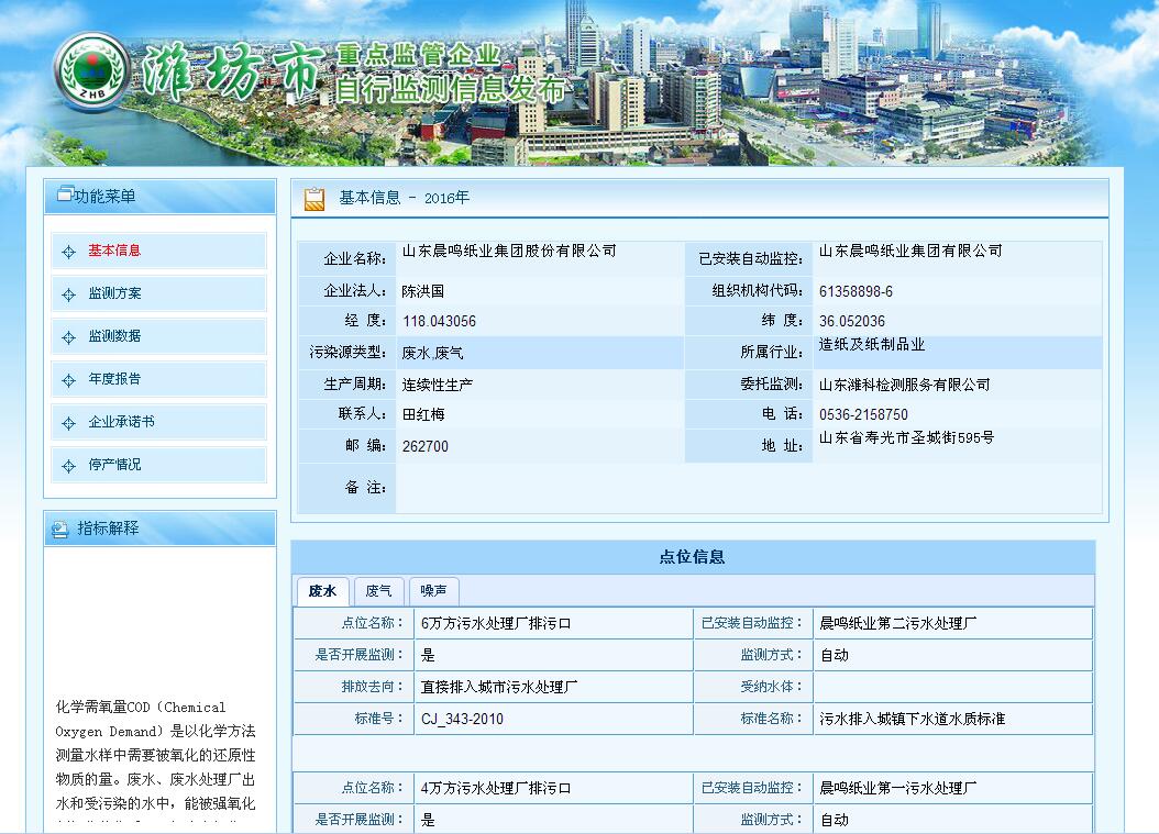 山東晨鳴紙業(yè)集團(tuán)廢水、廢氣自測公示161030